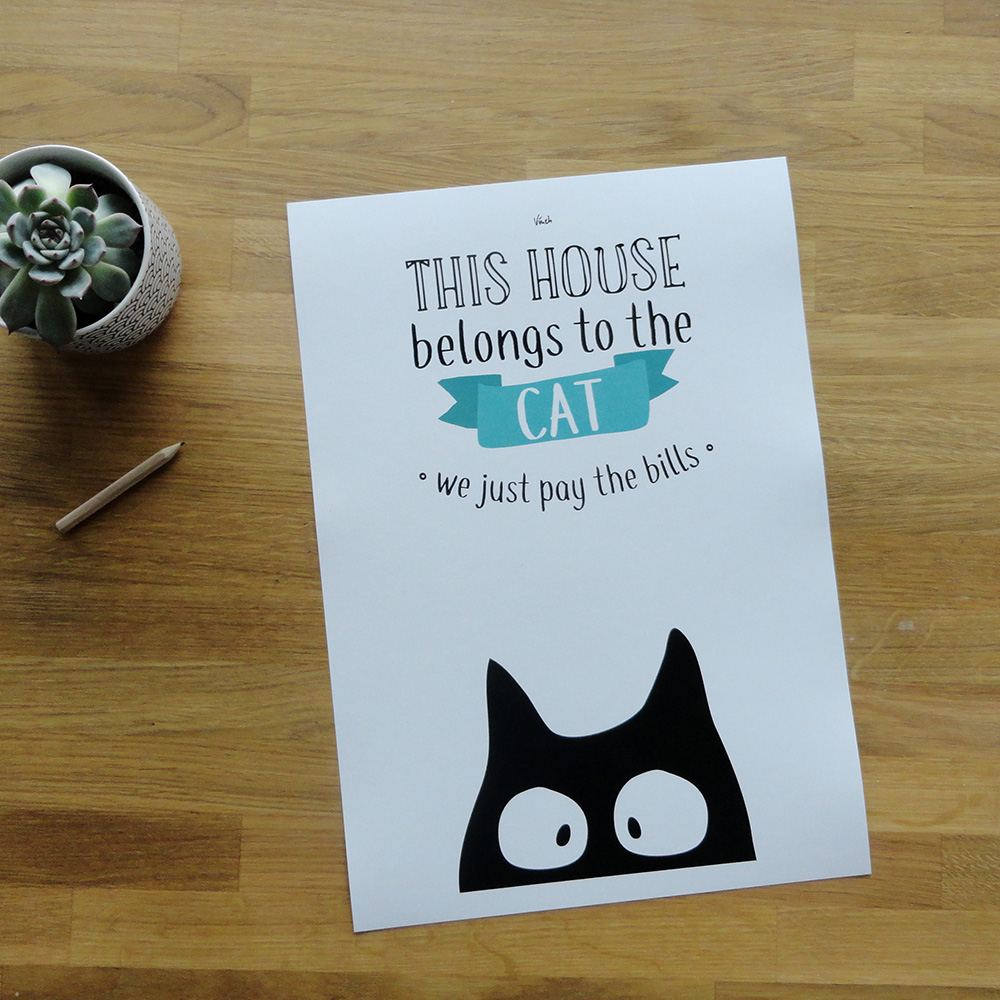 Affiche « cette maison appartient au chat, on ne fait que payer les factures ». Pour les animaux de compagnie chat rois de la maison
